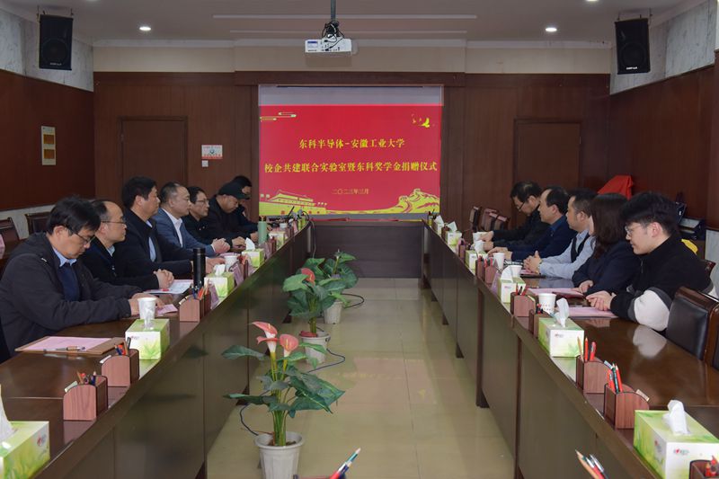 3月8日下午,微电子与数据科学学院与东科半导体(安徽)股份有限公司举行校企共建联合实验室揭牌暨东科奖学金捐赠仪式。校党委常委、副校长曾杰,东科半导体(安徽)股份有限公司董事长谢勇,东科半导体(安徽)股份有限公司副总经理杨伟真,东科半导体无锡有限公司总经理赵少峰出席仪式,教务处、发规处、校友处、微电子与数据科学学院等部门负责人以及公司人力资源部相关人员参加仪式。