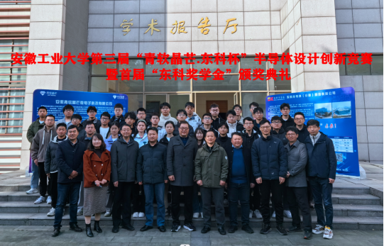 12月2日,微数学院在图书馆大明报告厅举办第三届“青软晶芒-东科杯”半导体设计与创新竞赛暨首届东科奖学金颁奖仪式。东科半导体(安徽)股份有限公司、安徽青软晶芒微电子科技有限公司、讯喆微电子合肥有限公司、南京优奈特信息科技有限公司等单位领导、企业专家以及学院领导班子、部分师生参加。