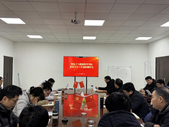 1月10日下午,微电子与数据科学学院在数理楼306会议室召开2024年度系部主任工作述职测评会。学院领导班子成员、党支部书记、系室主任参会,会议由院长杨二光主持。