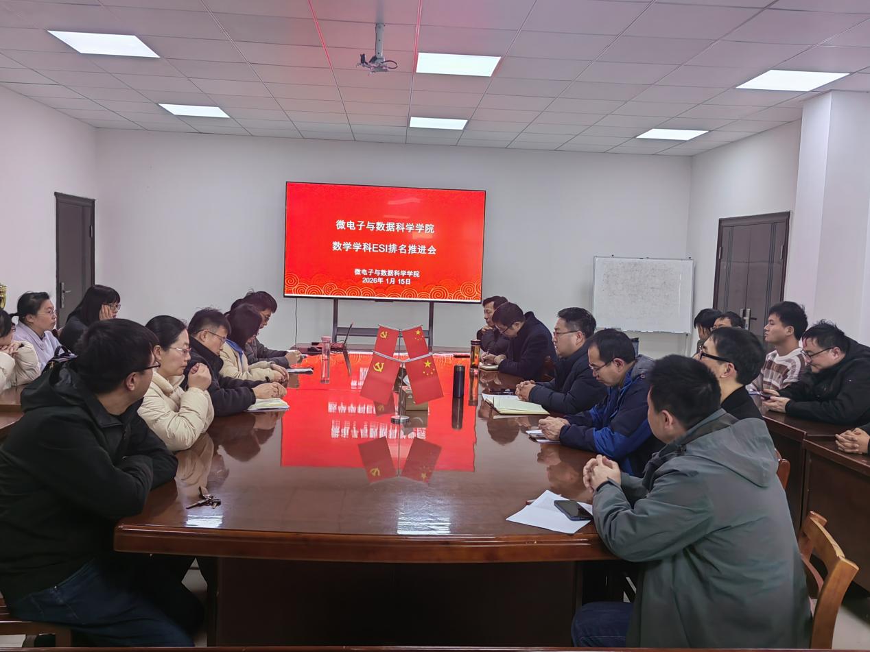 2026年1月15日下午,微电子与数据科学学院在数理楼306会议室召开数学学科ESI排名推进会。会议由院长杨二光主持,学院数学学科教师代表参会。