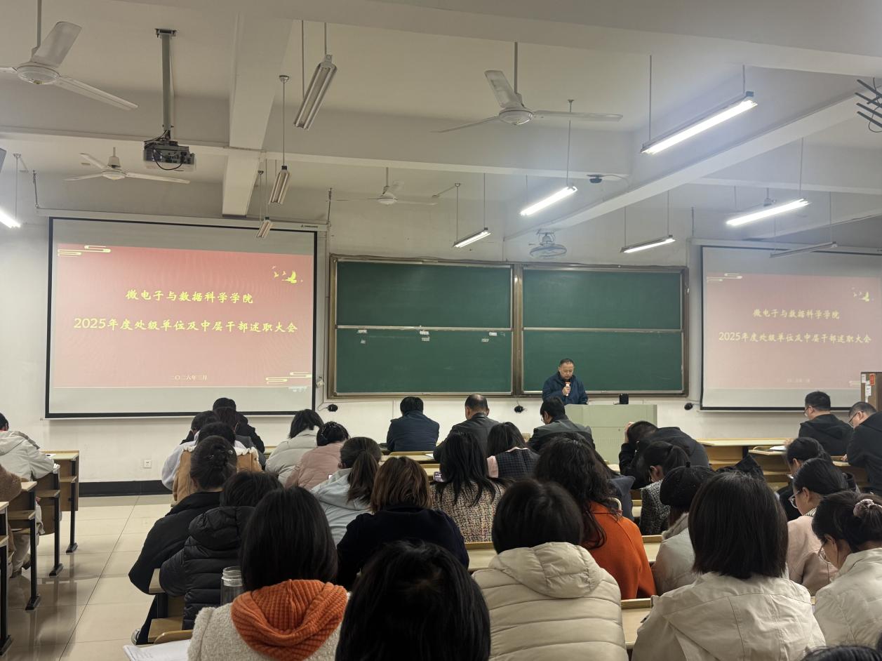 3月23日,微电子与数据科学学院在数理楼403教室召开全院教职工大会。学院全体教职工参加会议,会议由学院党委书记汪春胜主持。