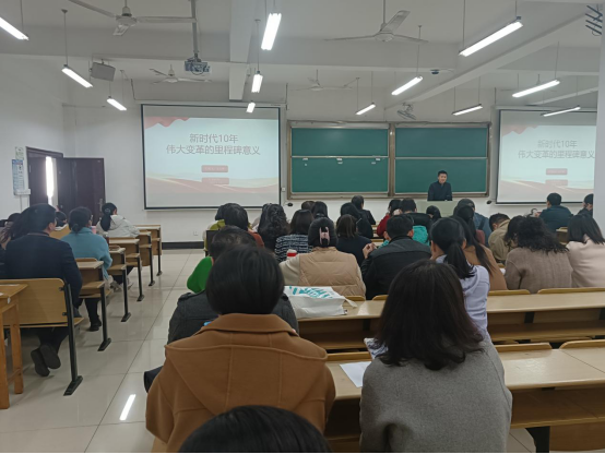 会上,张清进行了总结,她指出此次报告主题鲜明、思路清晰、内涵丰富,有助于我们更加深入地理解党的二十大精神内涵,更加深刻地理解了中国共产党带领全国人民实现中华民族伟大复兴的决心。我们要将思想和行动统一到党的二十大精神上来,将精神和力量凝聚到教育事业上,凝聚到学院的发展上来。(撰稿:陈霞;审核:张清)