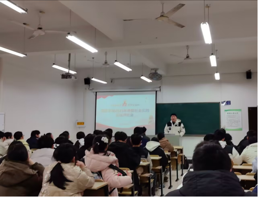 本次社会实践活动涵盖了文化传承,基层服务,实践调研等多个领域。会上,各队长结合PPT,视频以及图片等形式进行陈述和展示,详细介绍了自己在寒假期间的实践经历。张佳良就各个班级的汇报情况进行了点评。他指出,同学们在实践中展现出的适应能力和创新思维,展现了我院学子优秀的综合素质。希望同学们在今后的学习与生活中继续发扬实践精神,不断探索、勇于担当,为推进中国式现代化贡献青春力量。