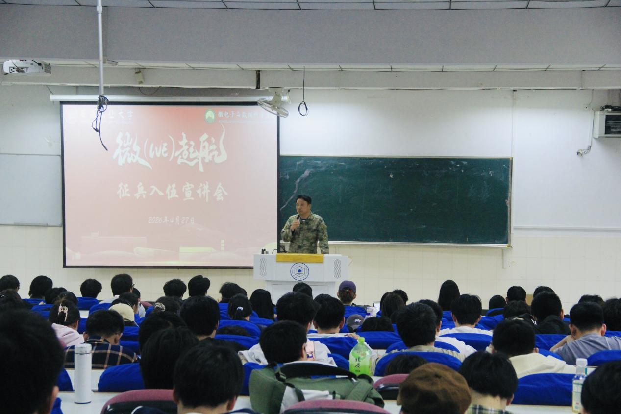 4月27日下午,微电子与数据科学学院在阶教102举办“唯实”学生成长成才论坛(第十期)。本次论坛特别邀请校征兵工作站嵇虎老师及2026届考研优秀学子刘西臣等同学担任主讲人,2023级全体学生参会,辅导员王小花主持。