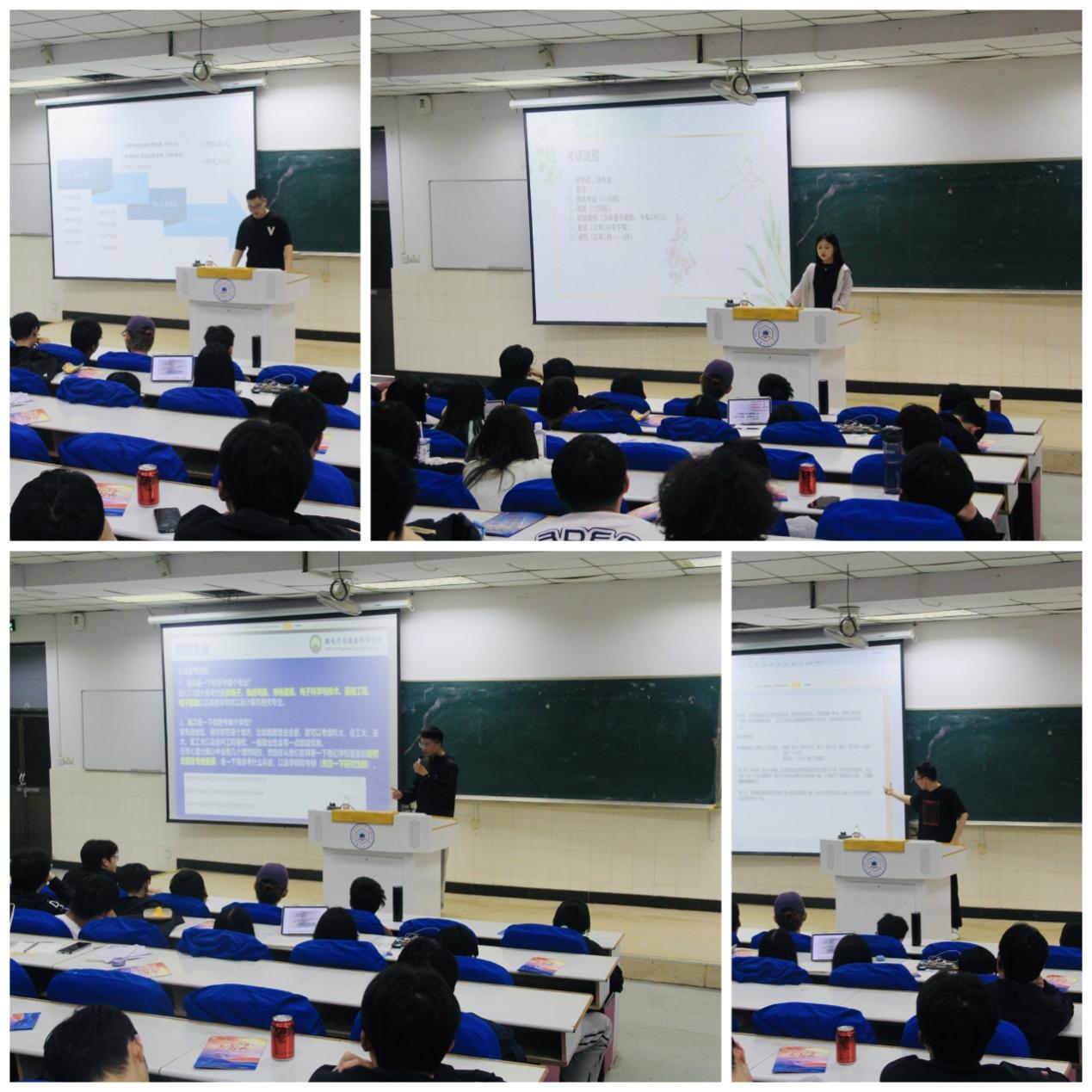 刘西臣等四位同学围绕考研择校、备考方法、心态调整等方面进行分享。“考研第一步不是拿起书本,而是想清楚为什么要考研。”考入安徽大学的刘西臣同学坦言,很多同学盲目跟风考研,导致中途动力不足。他建议学弟学妹们在大三下学期就要明确目标院校和专业,综合考虑自身兴趣、专业前景、地域因素等,做出理性选择。考入山东科技大学的贺明宇补充道:“择校要量力而行,既要有挑战性,也要考虑可行性。可以通过查阅历年分数线、报录比、复试要求等信息,结合自己的学习基础和能力,选择最适合的学校。”“考研是一场持久战,科学的时间管理至关重要。”跨考考入安徽大学的王奇分享了他的时间规划:大三暑假前完成第一轮基础复习,暑假进行第二轮强化,9-10月主攻真题,11-12月查漏补缺和模拟训练。每天保持10小时左右的有效学习时间,同时保证7小时睡眠。在具体学习方法上,考入北京理工大学的陈林强调:“不要盲目刷题,要注重总结归纳。我每做完一套题都会整理错题本,分析错误原因,归纳解题思路。数学要重视基础概念和公式推导,英语要坚持每天背单词、读外刊,政治要关注时政热点。”